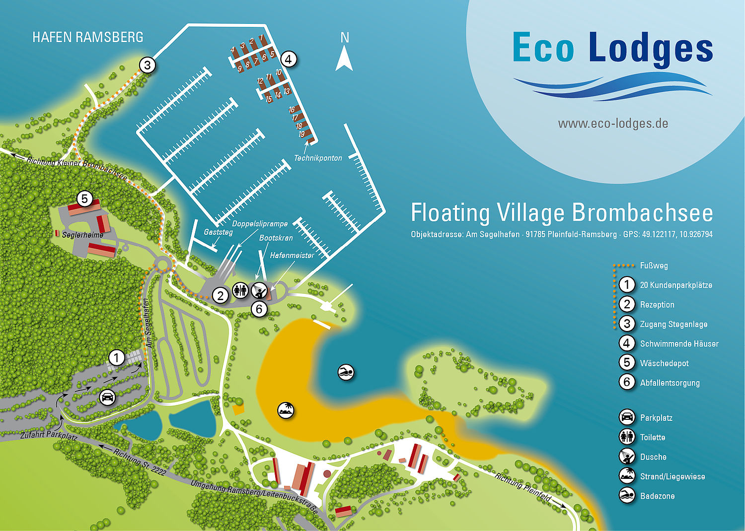 Hier können Sie den → Lageplan vom Floating Village Brombachsee herunterladen.